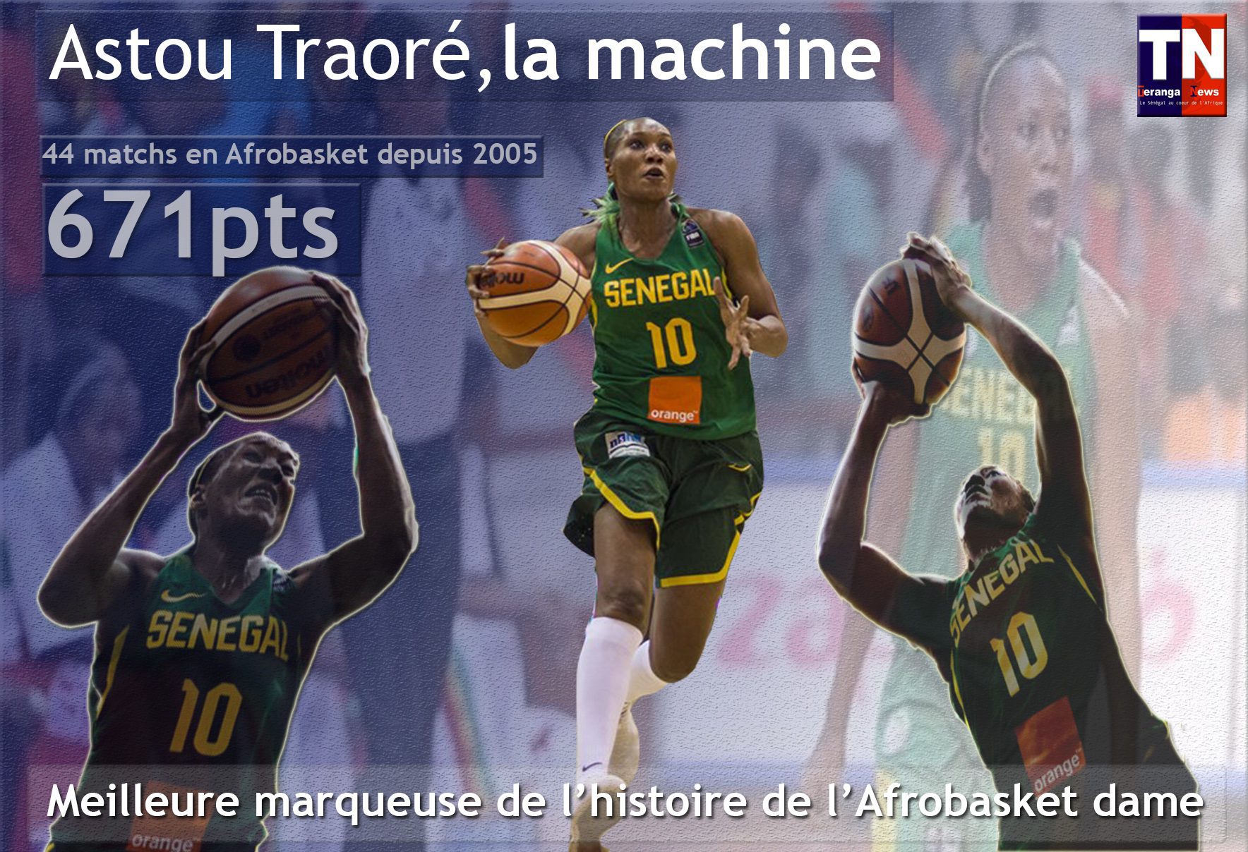 Aucune joueuse n’a été meilleure qu’elle en Afrobasket, tournant à 15 points par match depuis ses débuts en 2005. On dirait qu’elle se bonifie avec l’âge. Durant cet Afrobasket 2017, elle a explosé son record de points sur une édition qui était de 133 points en 2013. Elle en est déjà à 156 en 2017 avant la finale face au Nigéria.