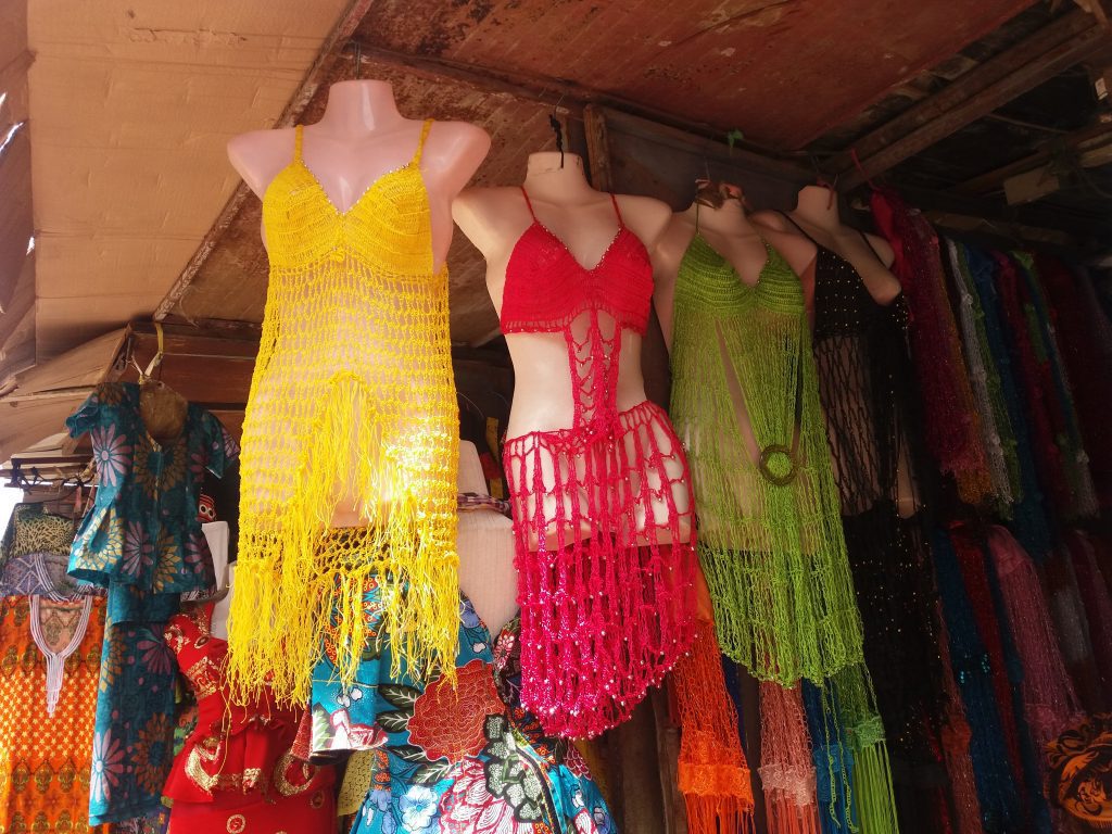 Assise dans son box d’environ 1 mètre 50, une dame est en train de confectionner les bine-bines (perles que les femmes portent pour orner leur tour de taille). La propriétaire des lieux, Aïcha (nom d’emprunt) a bien voulu se prêter à nos interrogations. « Mes clients sont de tout genre. Les femmes et les hommes achètent des nuisettes, des pagnes et des bine-bines. A la question de savoir si, elle en utilisait la réponse semble évidente « oui, j’en porte, en plus mon mari préfère les nuisettes ».