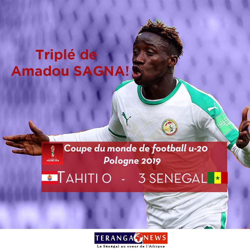 Amadou Sagna, le joueur de Cayor Foot en feu (trois deux buts pour le premier match 1er, 29, et 50e minute), les joueurs du coach Youssouf Dabo ont fait vivre un véritable calvaire au Tahiti ce jeudi 23 mai 2019, à Lublin en Pologne à l’occasion de son premier match de la phase de poules du Mondial U20.