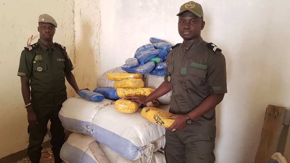En effet dans la nuit du Lundi 6 au Mardi 7 Avril, suite à un signalement, les éléments de la subdivision des Douanes notamment ceux du poste de Ker Ayip, à la frontière avec la Gambie, vers 2 heures du matin ont poursuivi une bande de trafiquants qui, dès l’apparition des douaniers ont pris la poudre d’escampette pour se volatiliser dans la nature laissant ainsi derrière eux eux les colis de Chanvre indien au nombre de 5, faisant au total 250 Kg de Chanvre indien pour une valeur marchande de 20 Millions de Fcfa.