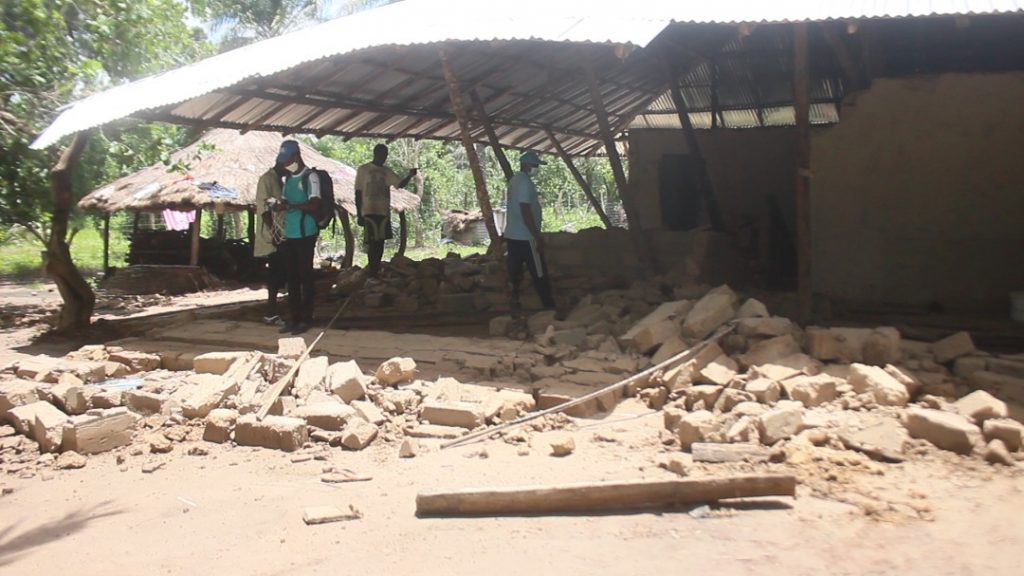 Parmi ces maisons, neuf (9) maisons en banco ont été entièrement détruites, affaissées et leurs toitures, y compris toutes leurs charpentes, ont été littéralement retrouvées par terre.