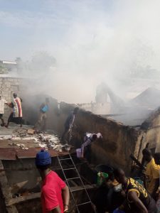 En effet, c’est une bonne partie de la toiture de cette maison qui a été brûlée par les flammes, les secours organisés spontanément par le voisinage et les commerçants établis non loin de là ont permis d’en sauver une autre.