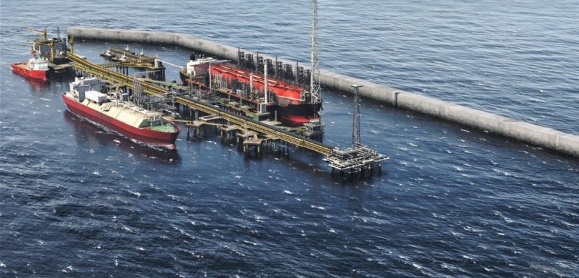 Le gaz extrait sera acheminé via des conduites et traité à bord d’une unité flottante de production, de stockage et de déchargement (FPSO) avant d’être envoyé vers le hub-terminal localisé à environ 10km des côtes. Une partie du gaz y sera liquéfié grâce à une unité flottante de liquéfaction du gaz naturel (FLNG) avant d’être acheminé sur le marché international, et une autre partie dite domestique sera envoyé à terre pour être utilisée afin de générer de l’électricité.